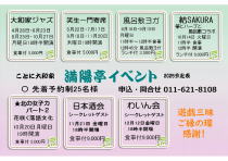イベントの詳細はこちらにて。ご予約・お問合せは必ずお電話でお願いいたします。 |